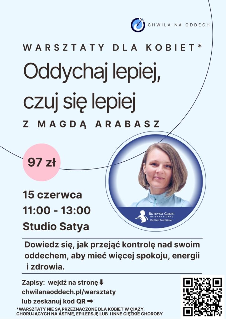Już 15 czerwca (niedziela) w klimatycznym studiu Satya w Gliwicach poprowadzę pierwsze stacjonarne warsztaty „Chwili na oddech”. To moje zaproszenie do wspólnej przestrzeni – spokojnej, ciepłej i bez presji.